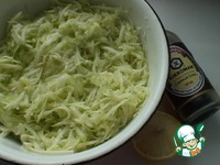 Подготовим продукты:кабачки натереть на терке и по желанию добавить лимонный сок и посолить. Я добавляю немного соевого соуса вместо соли. |