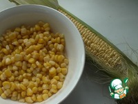 Добавляем кукурузу, муку, половину натертого сыра, майонез (можете не добавлять) и перемешиваем. |
