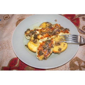 Описание: Сыр халуми традиционно едят жареным на гриле и гарнируют овощами и фруктами. В процессе не фотографировал, только конечный результат.