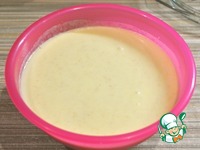 3. Смешиваем кефирную и яично-заквасочную смеси. Затем я сразу перелила эту массу в ведерко ХП и оставила на ночь. |