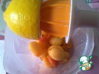 Приготовим абрикосовое желе: Одну чайную ложку желатина залить небольшим количеством холодной воды и дать постоять 5 минут. |