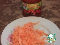 Нашинкуем морковь (у меня была замороженная) и откроем банку консервированных помидоров. |