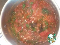 Добавляем консервированные помидоры, листочки базилика и щепотку сушенного, зелень, соль, сахар и перец молотый по вкусу. Тушим до готовности (пока все не превратится в кашу). |
