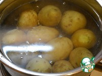 Отварить картофель в подсоленной воде. Желательно взять мелкий, хорошенько промыть и отварить его целиком, не очищая. У меня крупнее, поэтому потом я его немного порежу. |