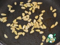 Слегка обжарить кедровые орешки на сухой сковороде. |
