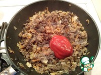 Теперь добавляем соль, сахар, перец и томатную пасту. Перемешиваем. |