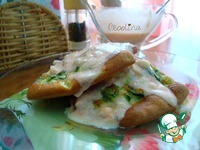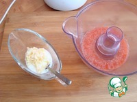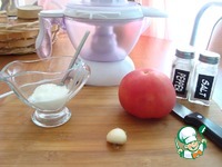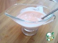 Чеснок добавила к йогурту и налила сока свежевыжатого. |