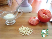 Срезала "крышечку" с помидора, чеснок мелко порубила (можно выдавить в чесночницу). |