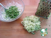 Кабачок трём на средней тёрке, петрушку мелко рубим. Отправляем в тесто. |