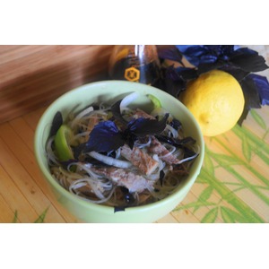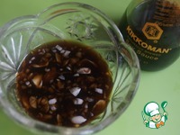 Для заправки: смешать соевый соус, лимонный сок и сахар, добавить пропущенный через пресс или мелко измельченный чеснок, измельченный перец чили и кориандр. Перемешать. |