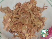 Твердый сыр нарезать соломкой и добавить в общую миску. |