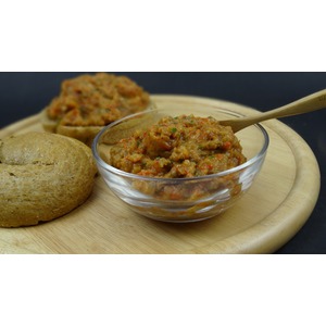 Запекаем баклажаны и перец в духовке на решётке под грилем при 180 градусах около часа, пока они не помягчеют и кожица не почернеет. Периодически их переворачиваем, что бы они не сгорели. Удаляем кожицу, у перчика удаляем и семена. Нарезаем баклажаны, перец, петрушку на куски. Кладём в блендер баклажаны, красный перец, чеснок, оливковое масло, сок лимона, соль, перец, петрушку и все хорошо измельчаем. Закуска готова. Её можно подавать и к шашлыкам, и просто на мазать на сухарик. Очень вкусно с чесночком!