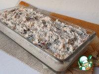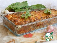 Выкладываем смесь в форму для запекания, сверху присыпаем оставшимся сыром. Форму я смазала маслом и посыпала панировочными сухарями. Если у вас силиконовая – этого можно не делать. |