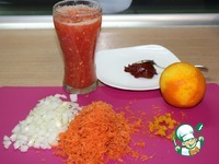 Из помидор приготовим сок. Должно получиться 250 мл сока с мякотью. |