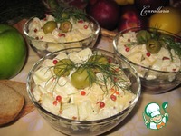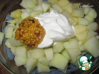 Яблоко очистить от кожуры и сердцевины, нарезать небольшими кубиками. Заправить сметаной и горчицей. |