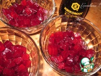 В порционные салатники выложить первым слоем свеклу. |