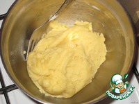 Сделать маленький огонь и всыпать сразу всю муку, быстро помешивая, чтобы не было комков. Массу слегка остудить. |