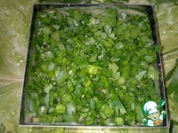 Мелко режим зеленый лук и петрушку, перемешиваем и выкладываем 4 слой. |