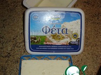 Фету нарезать кусочками, чтобы потом положить их внутрь наших котлет. |