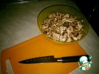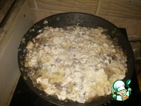 Добавляем к луку и жарим до выкипания всей воды. На этом этапе я советую посолить, чтобы грибы в дальнейшем не были пресными. |