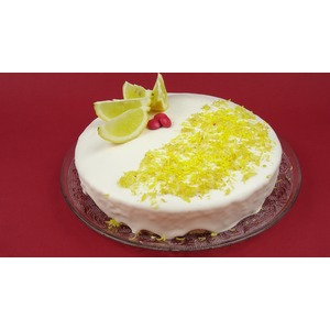 Можно украсить различными способами. Например, белковой глазурью. Посыпаем сверху цедрой лимона и положим пару долек лимона. Лимонный кекс готов. Внутри он получается влажный и кисленький.