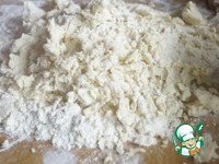 Для песочной основы муку высыпать на поверхность, добавить сахарную пудру и порезанное кусочками масло. Перетереть в крошку. |