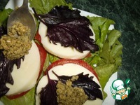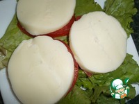 Кушается такими вот "бутербродиками", разумеется без хлеба. Можно поменять местами сыр и помидор, т. е выкладываем не сыр на помидор, а помидор - на сыр. Приятного аппетита. |