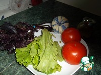 На салатные листья выложить кружочки помидор |