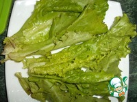 На дно тарелки выложить листья салата |