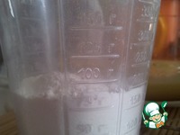 В мерном стакане смешать крахмал, муку и разрыхлитель. Должно получиться 80-100 г. |