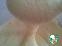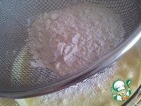 Смесь муки и крахмала просеять в желтковую массу и перемешать. Тесто получится довольно тяжелое и густое. |