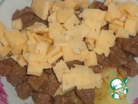 Твердый сыр порезать кубиками и добавить в общую миску. |