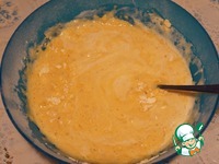 Взбить яйца и белок с тростниковым сахаром в светлую густую массу. Аккуратно смешать с мукой, цедрой и лимонным соком, маслом и кефиром. |