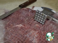 Как следует отбиваем говядину, превращая кусок в пласт |