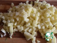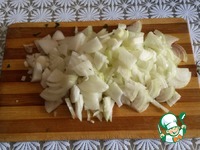 Пока наше тесто отдыхает, нарезаем лук полукольцами можно и кубиками. |