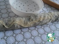 1. И сворачиваем в рулет. 2. Защипливаем края. |