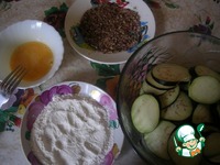 Орехи мелко порубить ножом, яйца взбить, муку насыпать на тарелку. |