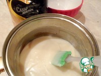 Готовый крем закрываем пищевой плёнкой, так, чтобы та касалась его поверхности, это предотвратит образование корочки. Крем должен немного остыть, но вне холодильника. |