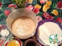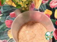 Получаем по консистенции массу как густая сметана. Накрываем полотенцем и ставим на подъем до шапочки (около 30 мин). |