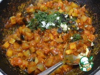 Влить воду и немного потушить. Когда вода испариться на половину, добавить томатную пасту, перемешать и тушить еще 2-3 минуты. |