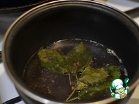 Отвариваем 5мин. листья вишни в воде, затем сами листья выкидываем |