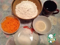 Тесто делим на 2 части. В одну добавляем тертую морковь, в другую кунжут. Хорошо вымешиваем, чтобы добавка равномерна разошлась по тесту.