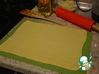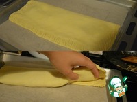 Размораживаем тесто, раскатываем до состояния прямоугольника. И откладываем тесто отдыхать. |