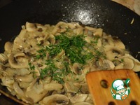 Когда лук и грибы стали мягкими - добавляем укроп, соль, перец и сливочное масло. И доводим до готовности. |