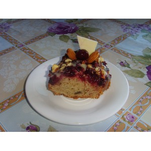 Описание: Вкусный десерт с шоколадом и вишнями эффектно смотрится, быстро съедается, потому что вкусный, и легко готовится. Тесто с вкраплениями шоколада ароматное, сладкое, вишня с кислинкой, орехи похрустывают - ну что еще нужно для чаепития?! ))