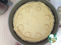 Тесто раскатываем до 5 мм и так, что бы хватало на стенки формы. Так же лист для того, что бы накрыть начинку. Оставляем минут на 20-30, чтобы тесто подошло. |