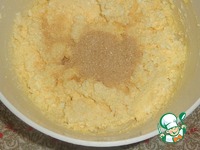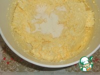 Добавляем разрыхлитель теста, смешанный с мукой. Замешиваем тесто, которое не прилипает к рукам. |