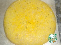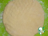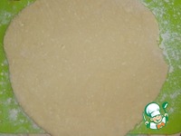 Тесто разделить на две части. Раскатываем первую часть и кладем на противень. |