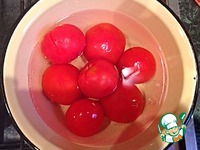 Помидоры надо очистить от кожуры, для этого обдаем их кипятком. |
