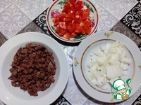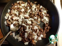 Обжариваем на сковороде лук с сердцем, немного присолив. Вообще, я предлагал жене традиционно фаршировать фаршем (пардон за тавтологию)), но ей не захотелось и она придумала фаршировать сердцем. |